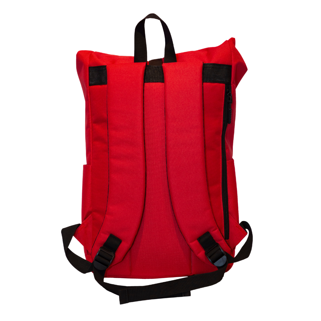 The Roll Up Laptop Backpack offers a secure and versatile carry for your daily essentials. Its unique roll up closure and buckle clip ensures your items stay safe and organized. With side pockets, a laptop compartment, and a hidden zipper compartment, this backpack provides convenient storage options. The padded shoulder strap allows for comfortable wear, making this backpack a practical choice for everyday use.